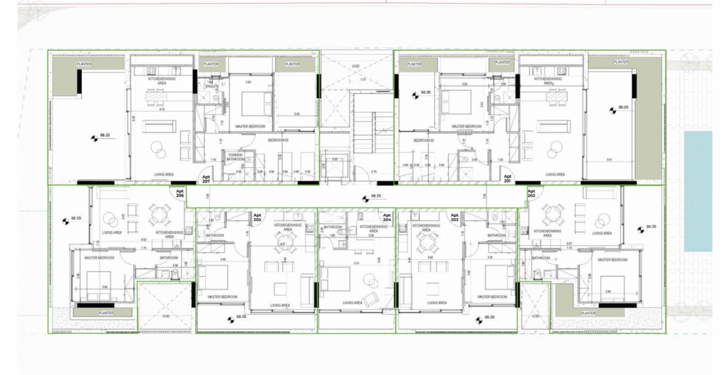 This project is situated in the heart of Paphos, within close proximity to all amenities, including cafés, schools, supermarkets, and shops. The development comprises 21 apartments, featuring studios as well as one- and two-bedroom units, and includes an outdoor communal swimming pool.