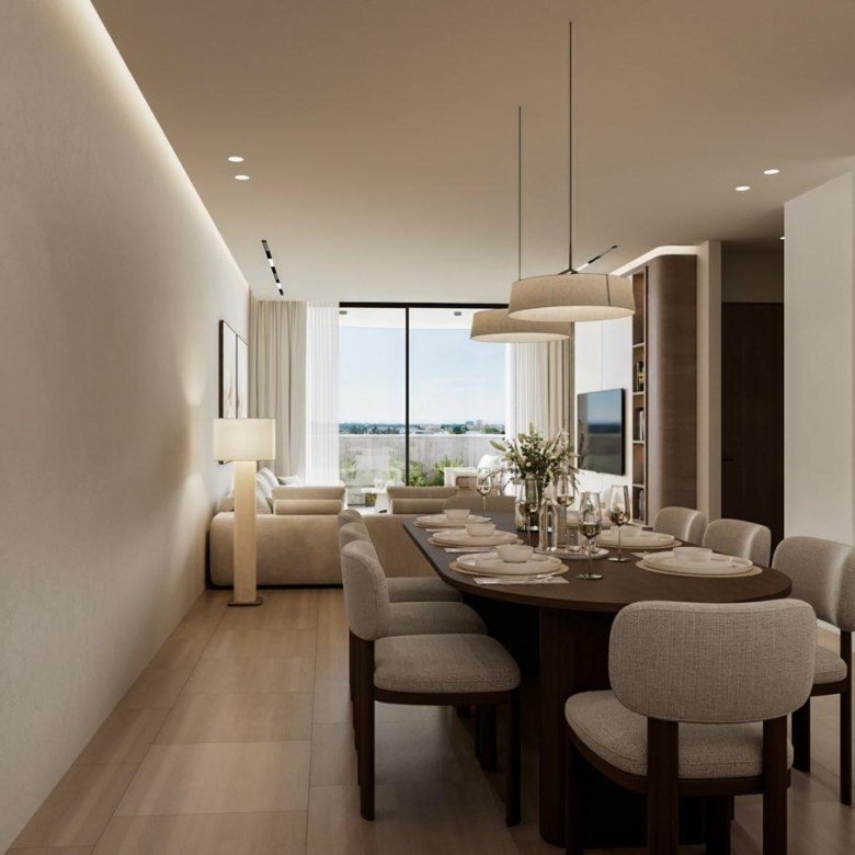 This modern project is located in the picturesque area of Geroskipou, Paphos, close to all amenities including shops, bakeries, schools, and supermarkets, with easy access to the city center. The apartment features 1 bedroom and 1 bathroom, a covered veranda and the building includes a communal swimming pool.