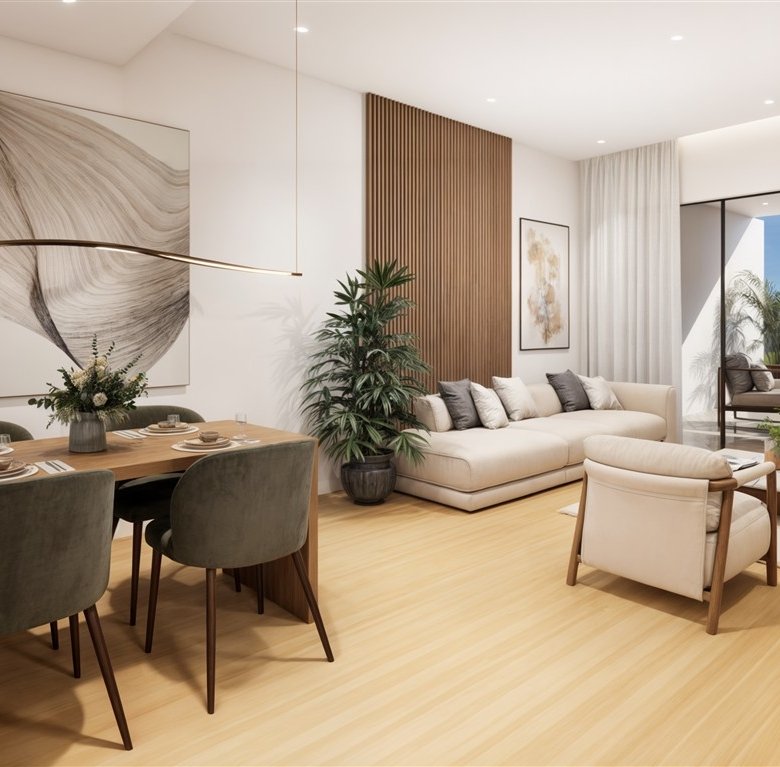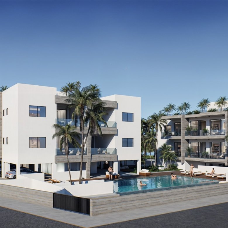 This modern project is located in the picturesque area of Kissonerga, Paphos, just 1.5 km from the beach and close to all amenities, including schools, shops, and cafés. The spacious apartment features three bedrooms, two bathrooms, an open-plan living and kitchen area, and a covered veranda. The complex offers excellent facilities, including a communal swimming pool and a gym.