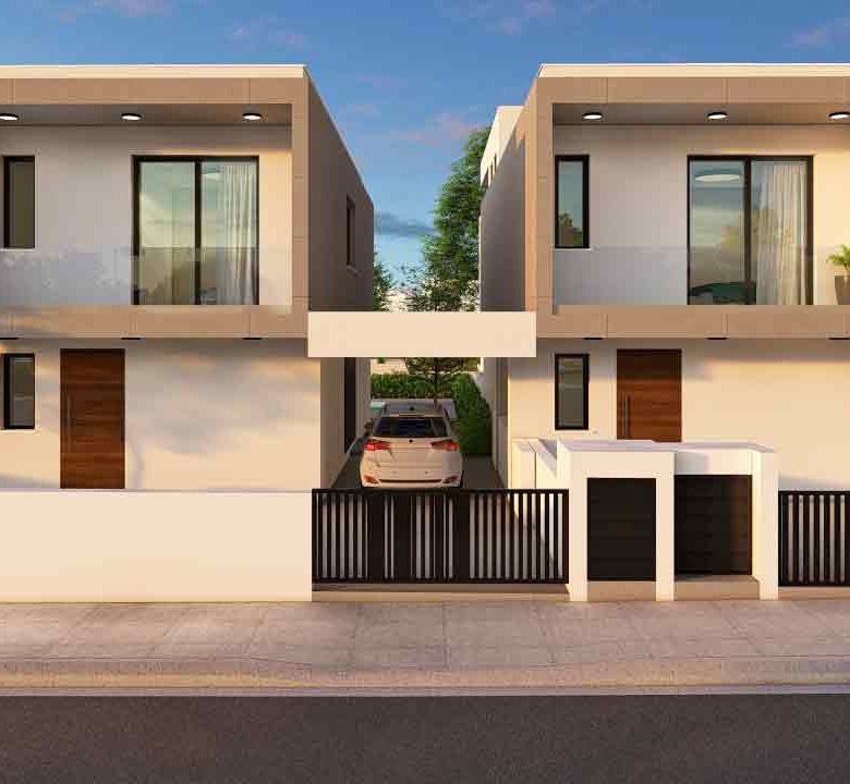 The project features an apartment block and two houses. The house includes 3 bedrooms, an open-plan kitchen and living area, and a private outdoor swimming pool.