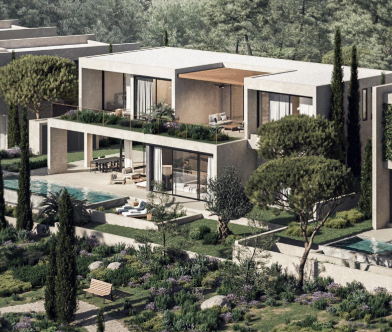 This new luxury development in Konia, Paphos, features 34 detached villas and 26 two- and three-bedroom townhouses arranged around a central green park. Situated in a prestigious hillside suburb, the project offers five contemporary design styles with high-quality finishes and modern architecture using natural materials and lush landscaping.