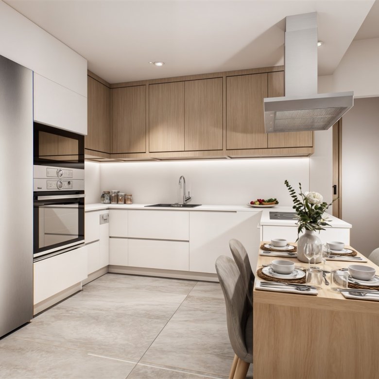 This modern project is located in the Universal area of Paphos, close to all amenities including cafés, shops, schools, supermarkets, and banks. The apartment consists of two bedrooms, two bathrooms, an open-plan kitchen and living area, and a covered veranda. The complex features a communal swimming pool.