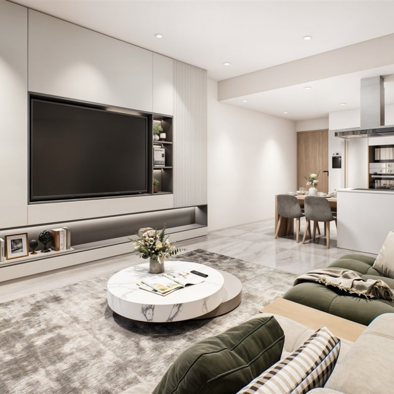 This modern project is located in the Universal area of Paphos, close to all amenities including cafés, shops, schools, supermarkets, and banks. The apartment consists of two bedrooms, two bathrooms, an open-plan kitchen and living area, and a covered veranda. The complex features a communal swimming pool.