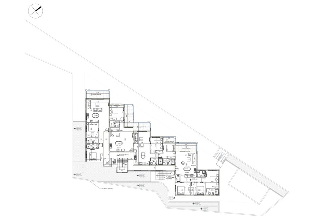 This project is located in Konia Village, Paphos, just 3 km from Paphos town, in peaceful surroundings. The building is a modern development and features a communal swimming pool. The apartment consists of two bedrooms, two bathrooms, and a covered veranda.