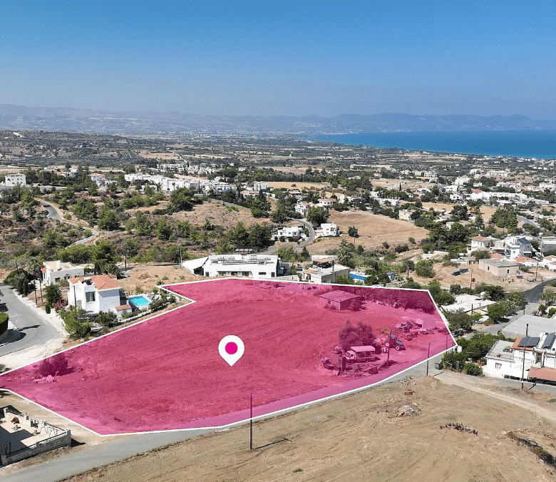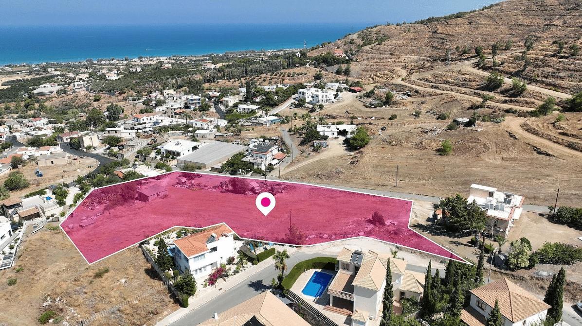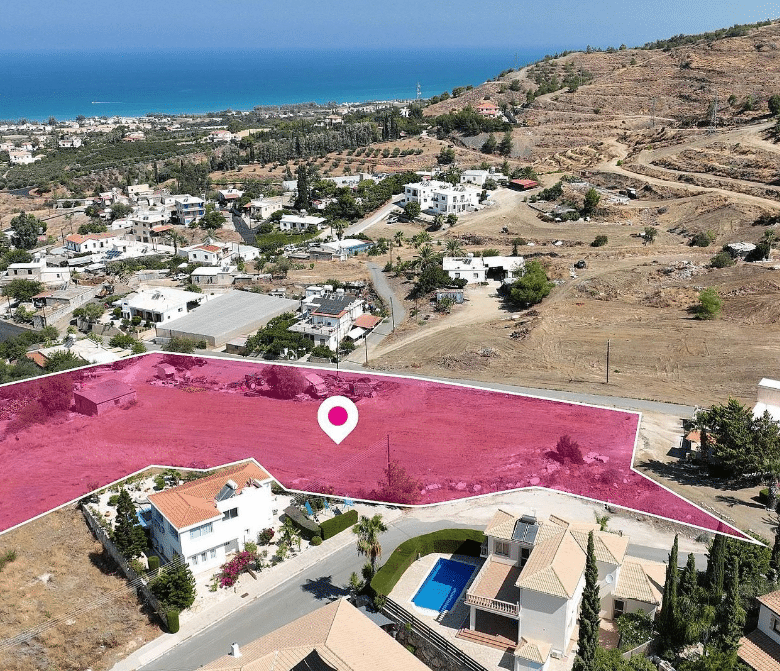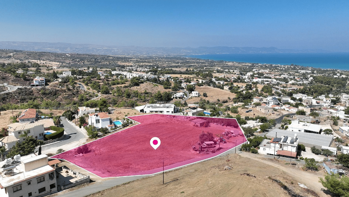 The residential field is situated in Argaka, Paphos, covering an area of approximately 8.027 m2. The field is accessible via a registered road with a frontage of around 120 meters. The property is located about 200 meters southeast of Argaka’s center and roughly 2 kilometers southeast of the coastline.