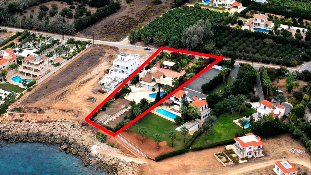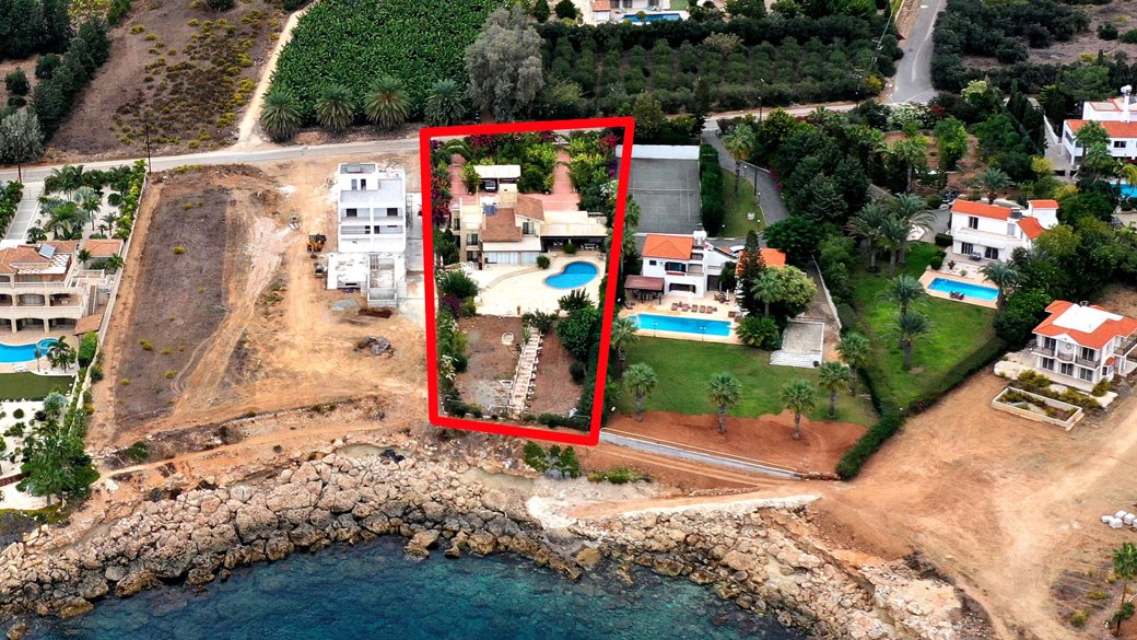 The property is a 3-bedroom seafront two-storey villa with a total land area of 2,950 m2 in Pegeia. It is located 4km from Pegeia Town in the famous area of Sea Caves.