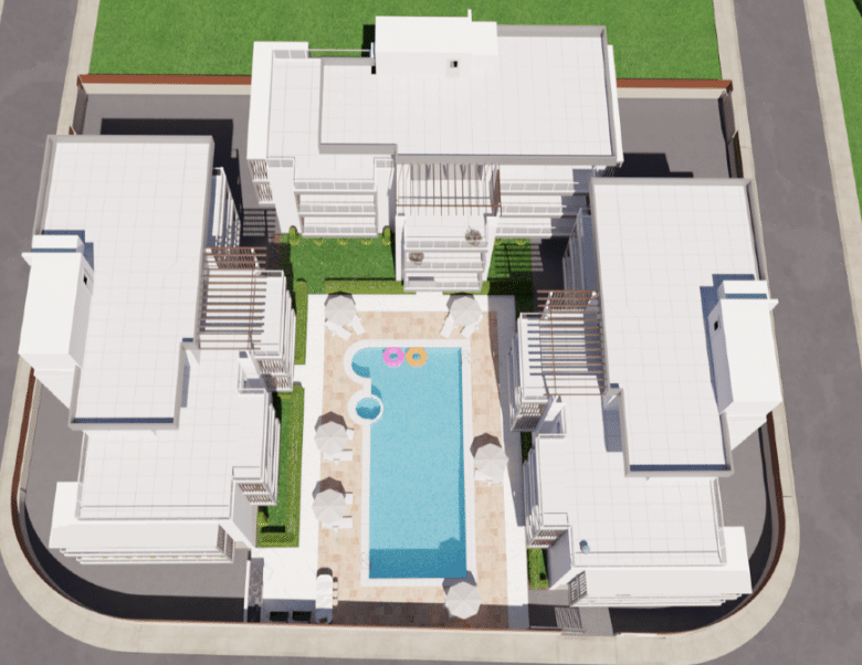 This residential complex is located in the very center of Universal area near the center of Paphos and it’s main touristic cluster. It is one of the quietest area, surrounded by green zones. In walking distance there is a supermarket, pharmacy, restaurants etc.