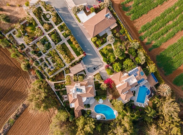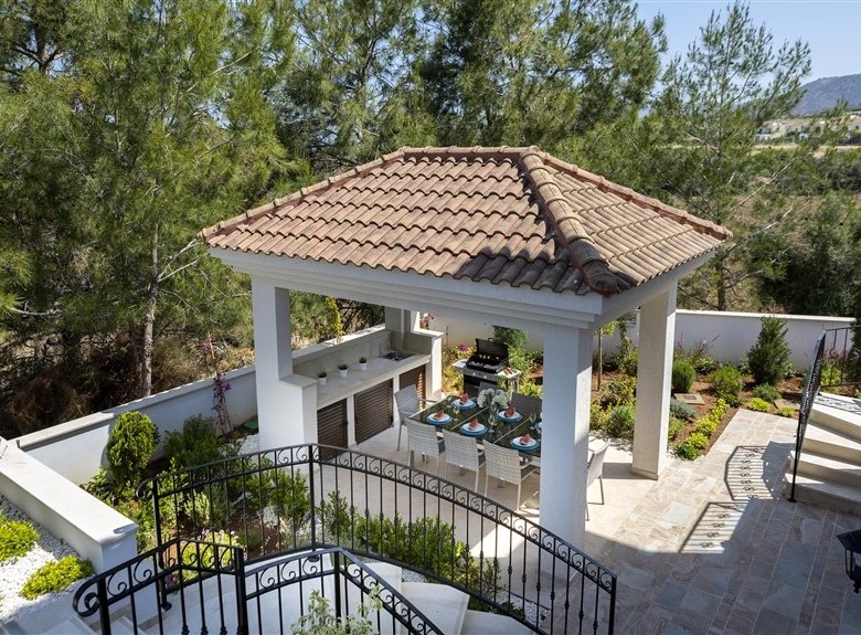 The project of a total area of 7879 sqm is a detached estate in a closed fenced and guarded area framed by natural adult pine trees, which includes two luxury villas with buildings and gardens, a staff building (two apartments and a covered equipped garage for two cars with a total area of 204 m2) and extensive green park for pedestrian pleasant walking. There is a private road leading to the automatic entrance gate of the estate, there is direct access to the sea from the project. The project is located on the embankment of Cyprus, near the town of Latchi.