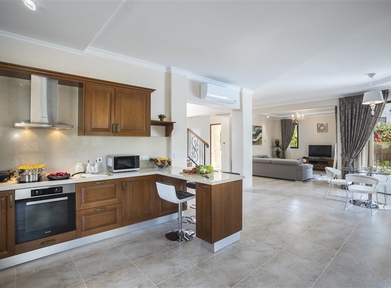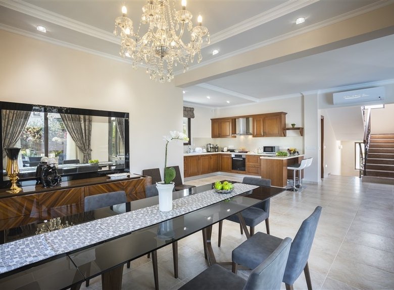 The project of the villa is modern and worthy of the attention of the most discerning clients. The best materials and components have been used, the structure of the building is well thought out and built to the highest quality standards. Air conditioning, heated floors, high speed WiFi, cable and satellite TV is available. The villa includes two kitchens equipped with modern kitchen appliances, high-quality German made dishes and kitchen utensils.