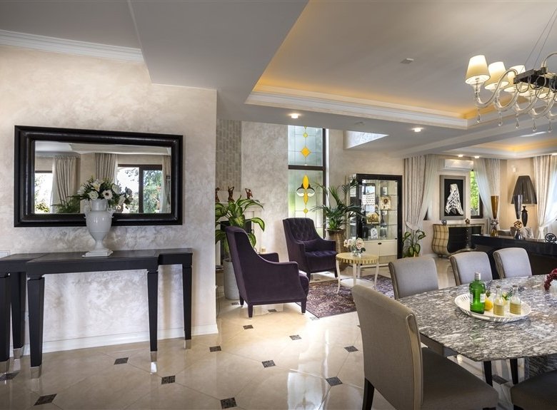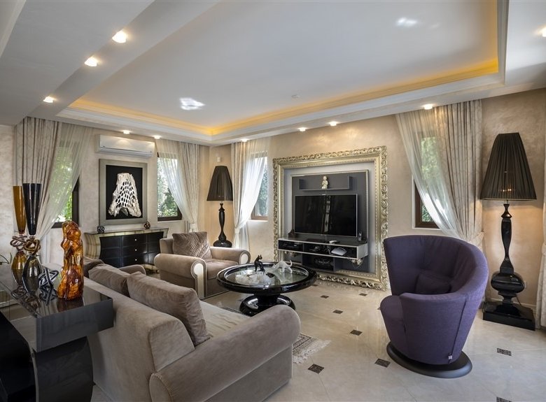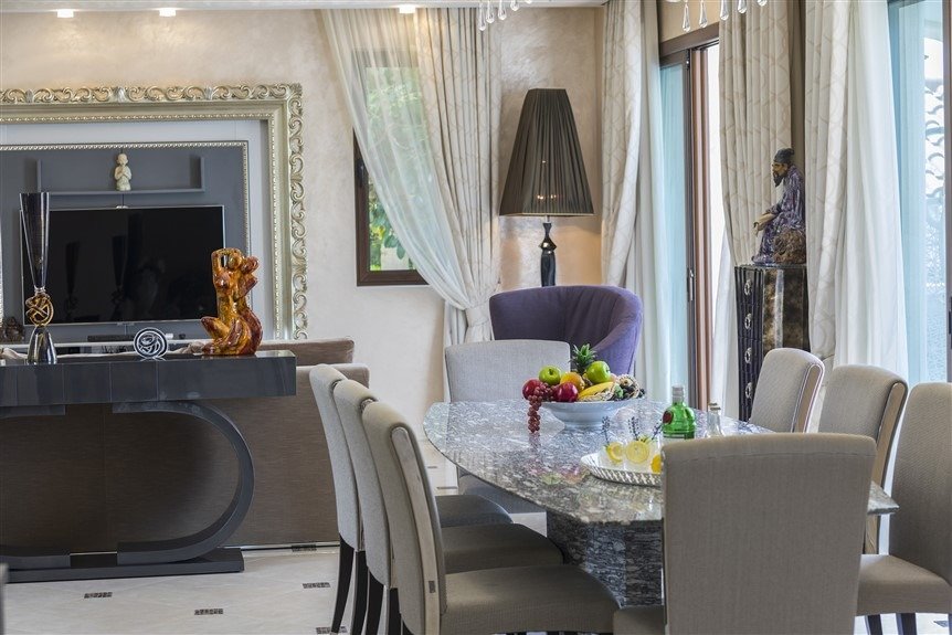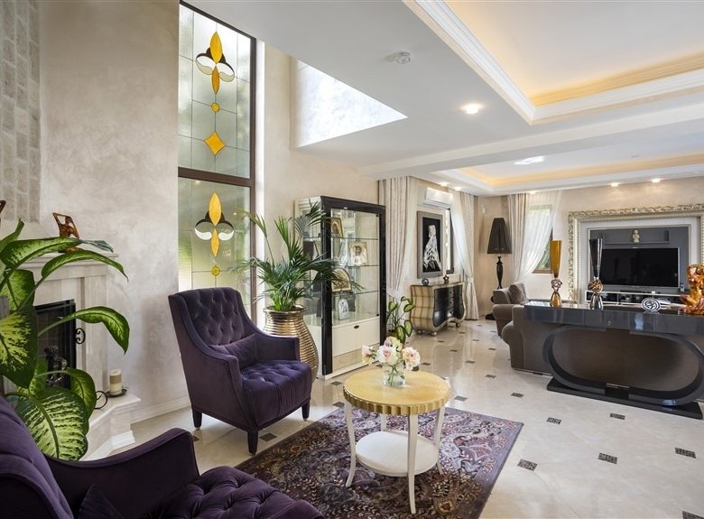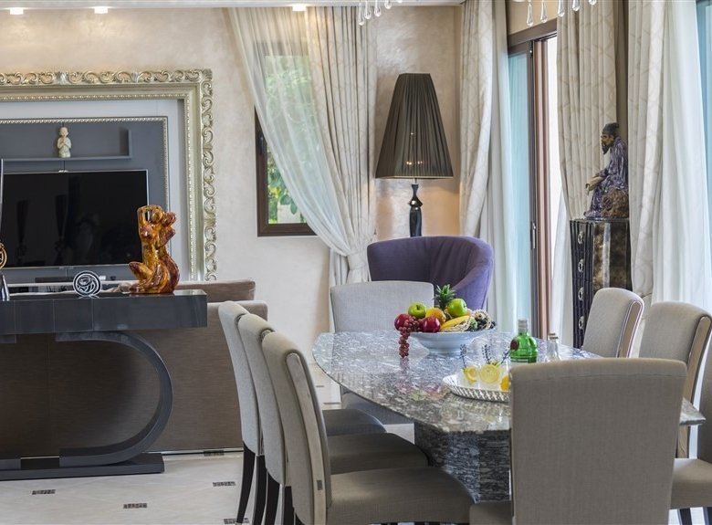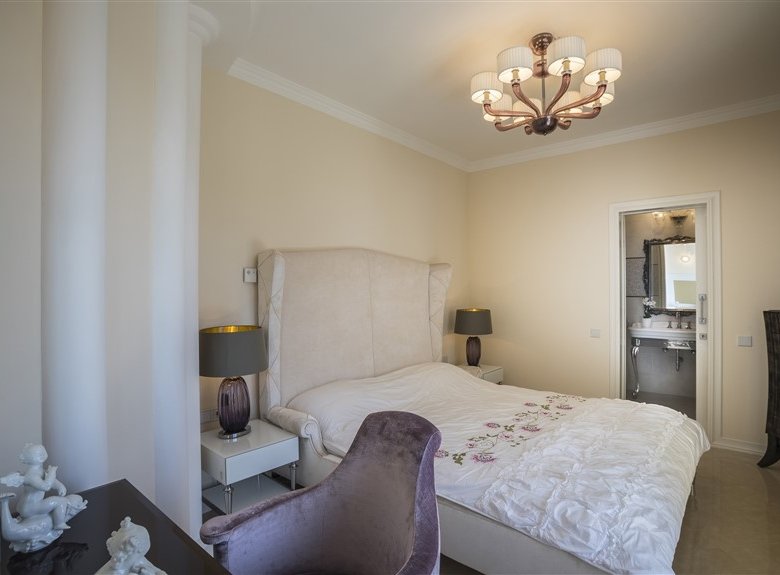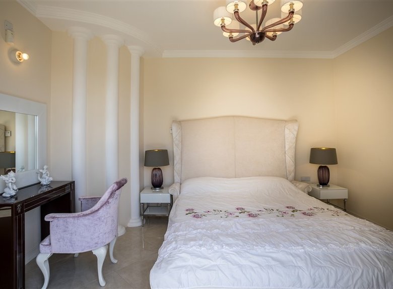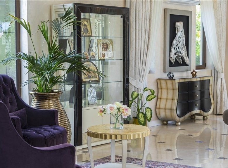 In the bedrooms and bathrooms of the villa, there is always new fresh bed linen and towels of the highest quality, The bedrooms and bathrooms have the latest sanitary equipment, air conditioning and heated floors, high speed WiFi and satellite and cable TV. The villa is equipped with Italian furniture branded “Fendi”, collectible sculptural compositions KPM (Germany), porcelain and bronze. The service staff daily cleans the villa, changes linen and towels, monitors the cleanliness, takes out the trash, and when you call on any question, they appear at the client’s place within 60 seconds at any time, since their apartment is conveniently located across a shady garden 50 meters from the villa.