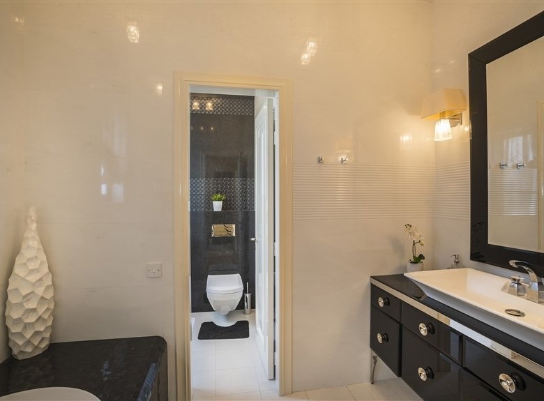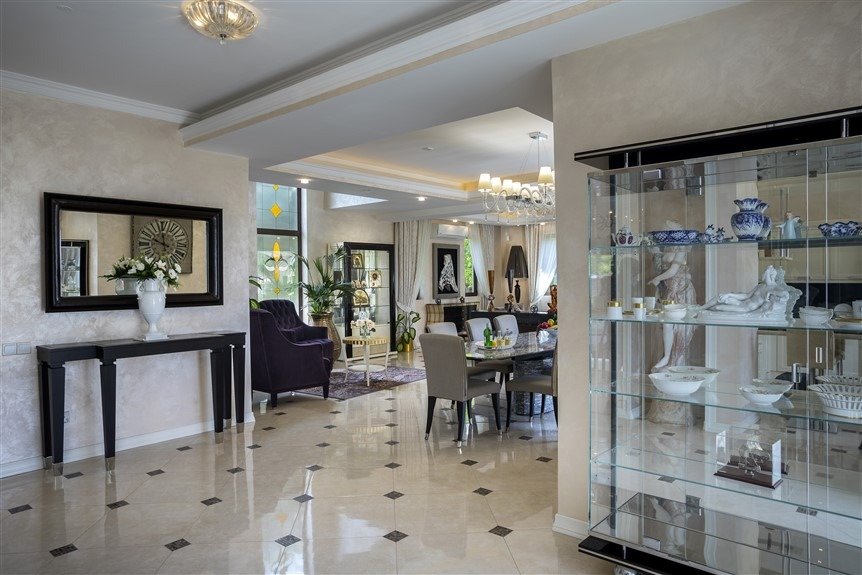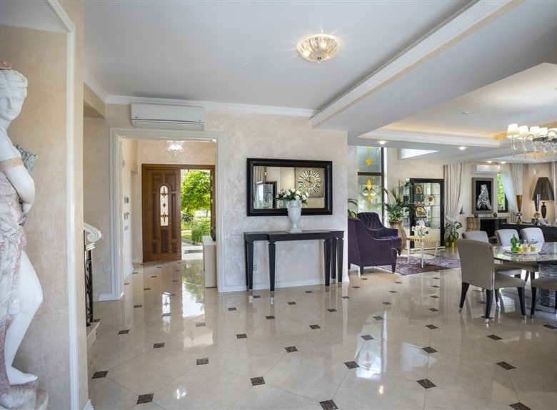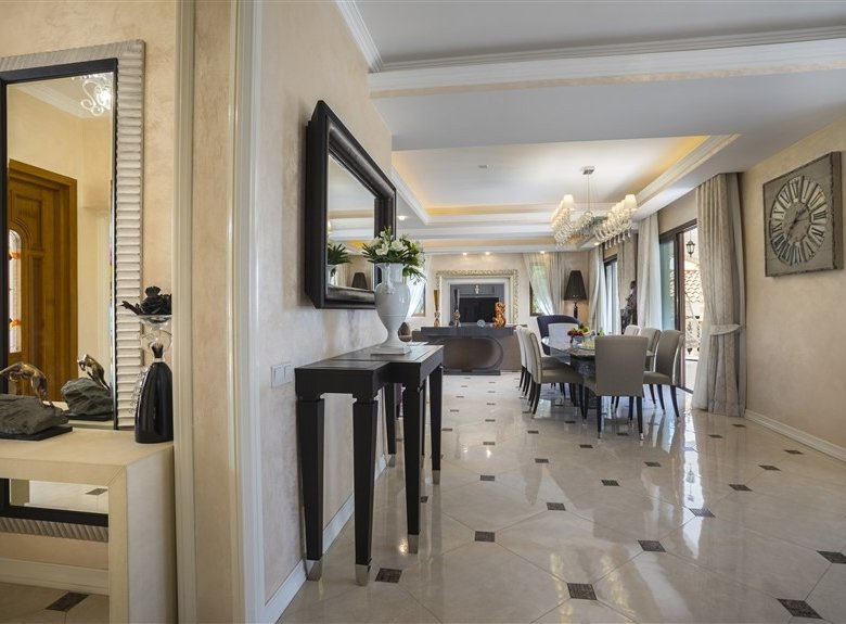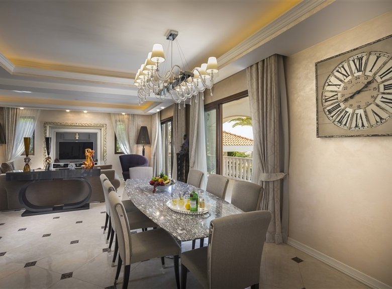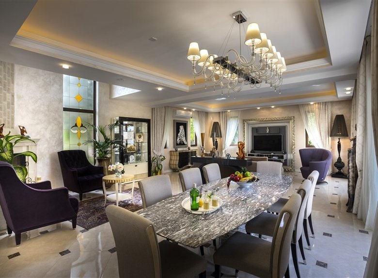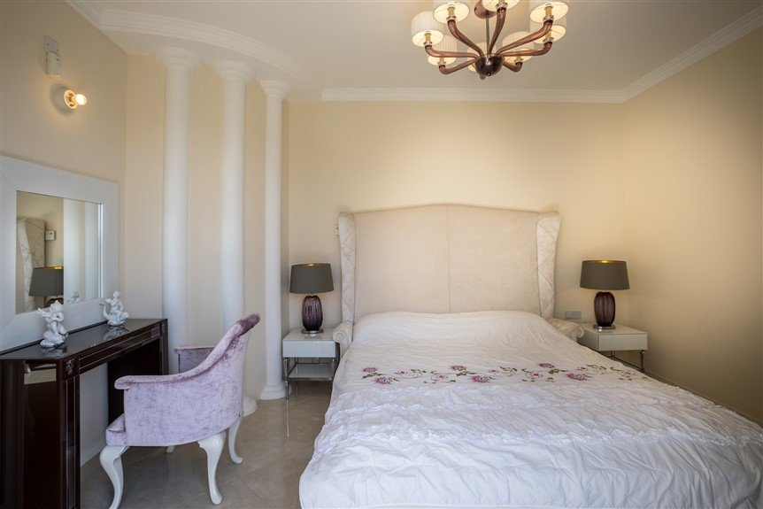In the bedrooms and bathrooms of the villa, there is always new fresh bed linen and towels of the highest quality, The bedrooms and bathrooms have the latest sanitary equipment, air conditioning and heated floors, high speed WiFi and satellite and cable TV. The villa is equipped with Italian furniture branded “Fendi”, collectible sculptural compositions KPM (Germany), porcelain and bronze. The service staff daily cleans the villa, changes linen and towels, monitors the cleanliness, takes out the trash, and when you call on any question, they appear at the client’s place within 60 seconds at any time, since their apartment is conveniently located across a shady garden 50 meters from the villa.