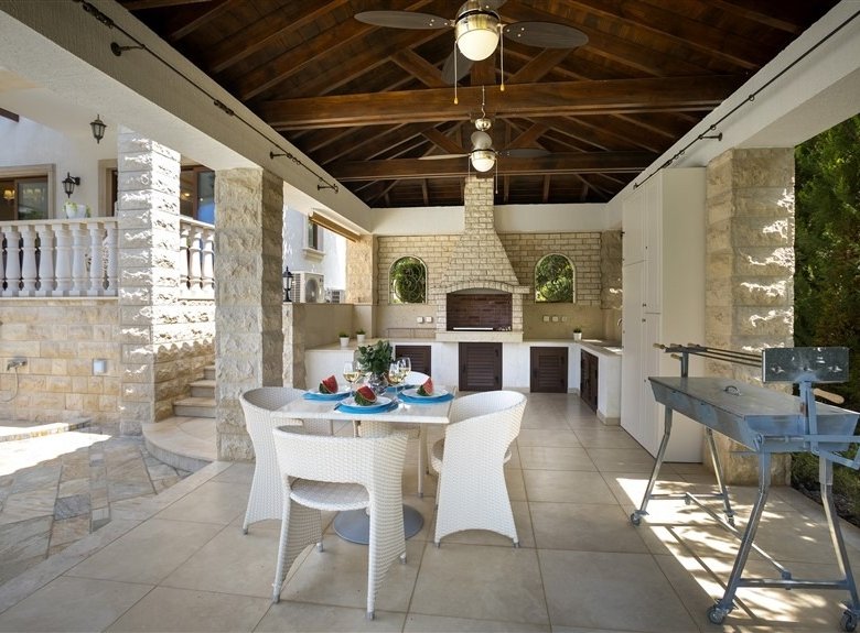 The 3000 m2 well-maintained and developed park with various green spaces on the territory of the estate is located 30 meters away from the villa and includes playgrounds for children’s games, a yoga area, a walking area and palm paths.