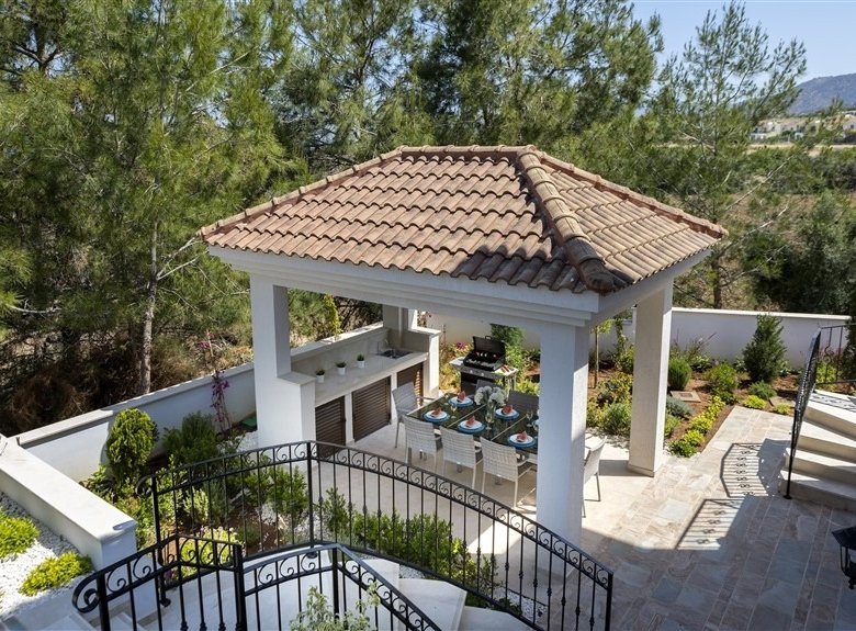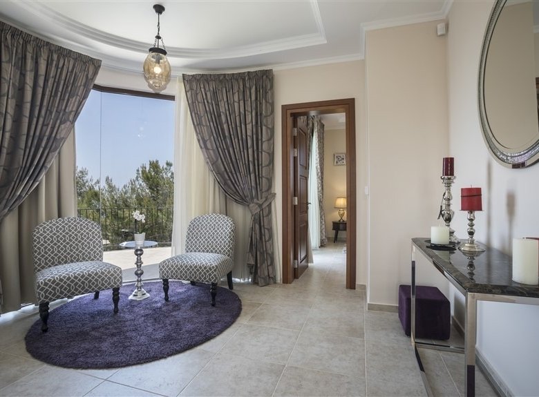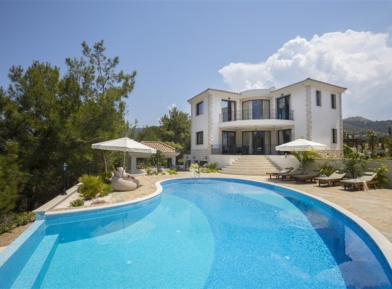 The project of a total area of 7879 sqm is a detached estate in a closed fenced and guarded area framed by natural adult pine trees, which includes two luxury villas with buildings and gardens, a staff building (two apartments and a covered equipped garage for two cars with a total area of 204 m2) and extensive green park for pedestrian pleasant walking. There is a private road leading to the automatic entrance gate of the estate, there is direct access to the sea from the project. The project is located on the embankment of Cyprus, near the town of Latchi.