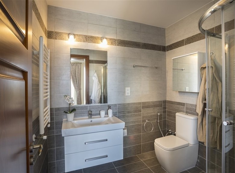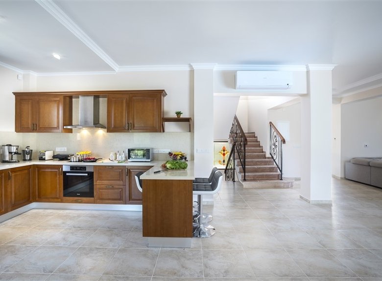 The project of the villa is modern and worthy of the attention of the most discerning clients. The best materials and components have been used, the structure of the building is well thought out and built to the highest quality standards. Air conditioning, heated floors, high speed WiFi, cable and satellite TV is available. The villa includes two kitchens equipped with modern kitchen appliances, high-quality German made dishes and kitchen utensils.