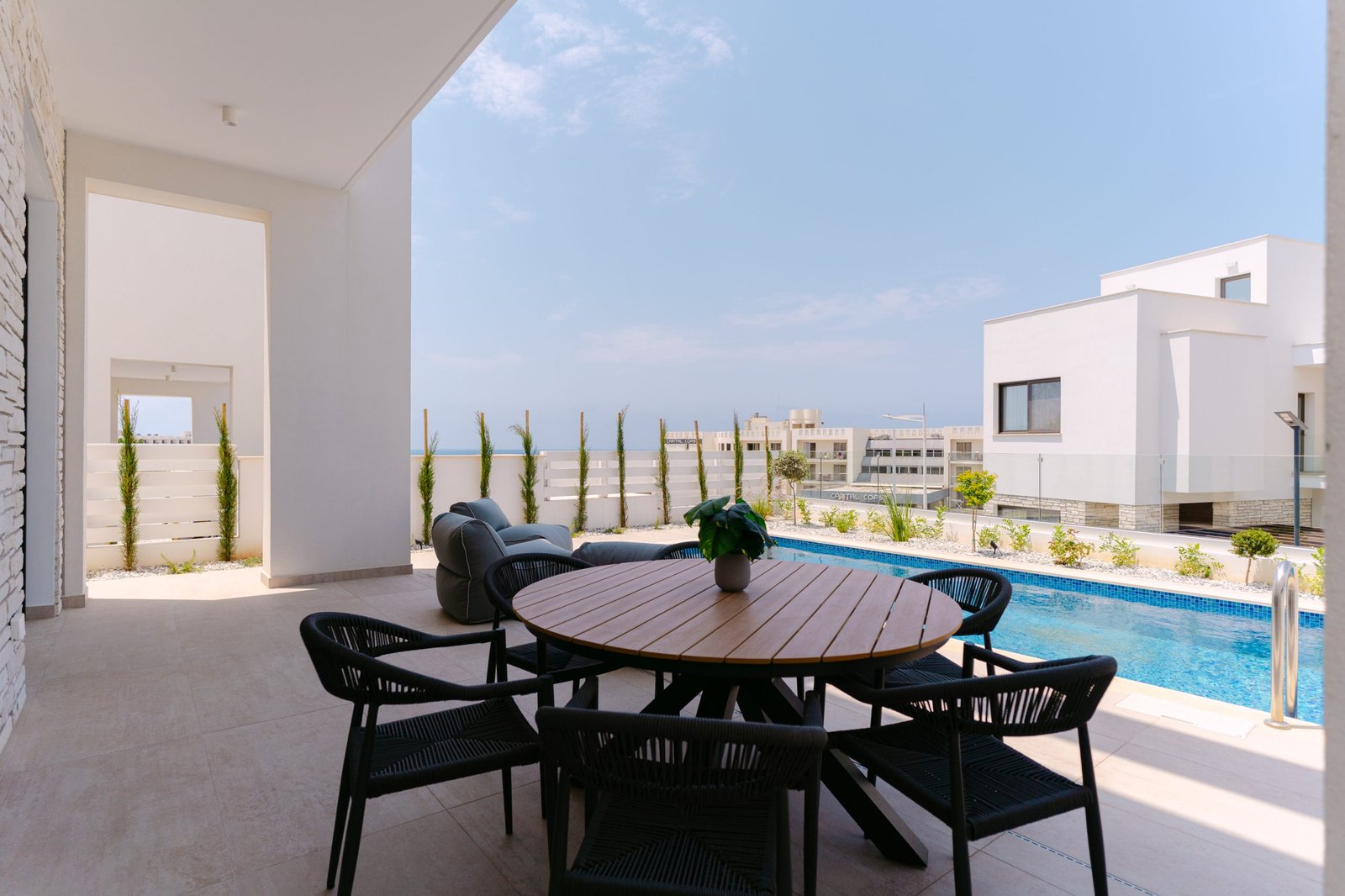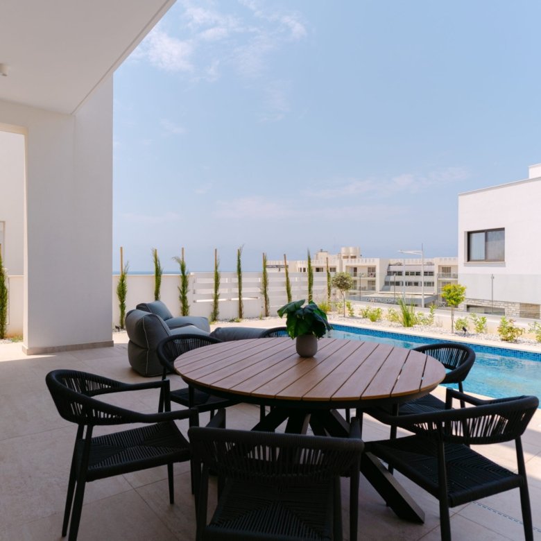 This elegant 3-bedroom villa is located in the picturesque Venus Beach area of Paphos, a highly sought-after location just minutes away from supermarkets, restaurants, hotels, shopping malls, an international school, Paphos Harbour, the Medieval Castle, and numerous archaeological sites. The villa features a private pool, spacious and bright interiors, high ceilings, and a fully equipped, state-of-the-art kitchen crafted with the finest materials and appliances.