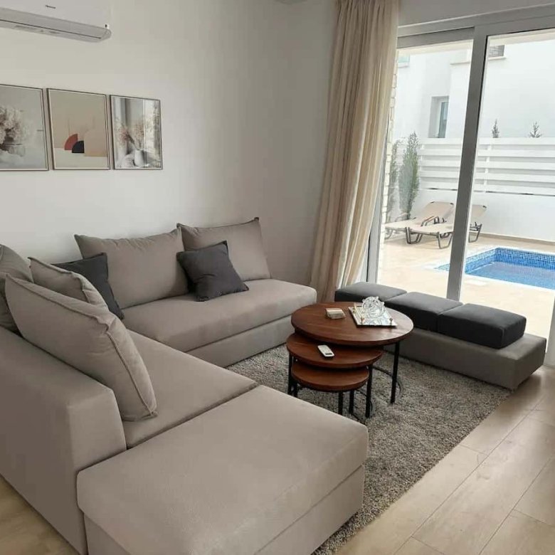 This charming 3-bedroom villa is situated just 3 km from the beach, in the desirable area of Pegeia, Paphos. Fully furnished and thoughtfully equipped, it comes with essential household appliances, including a washing machine and a TV. The villa boasts air conditioning for your comfort and offers Wi-Fi connectivity. Outside a private swimming pool and convenient on-site parking.