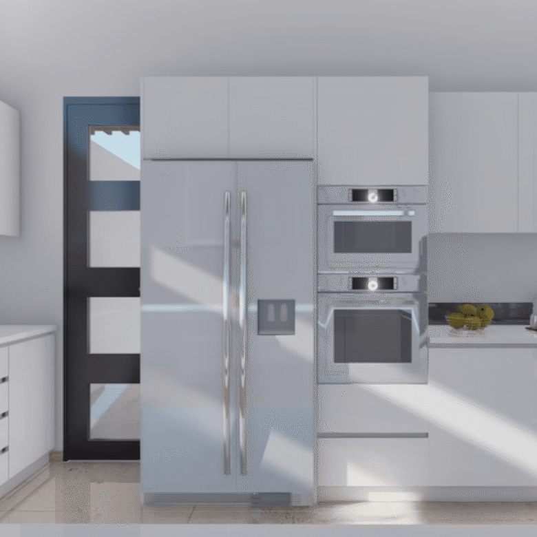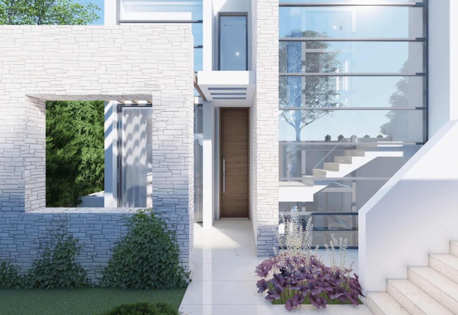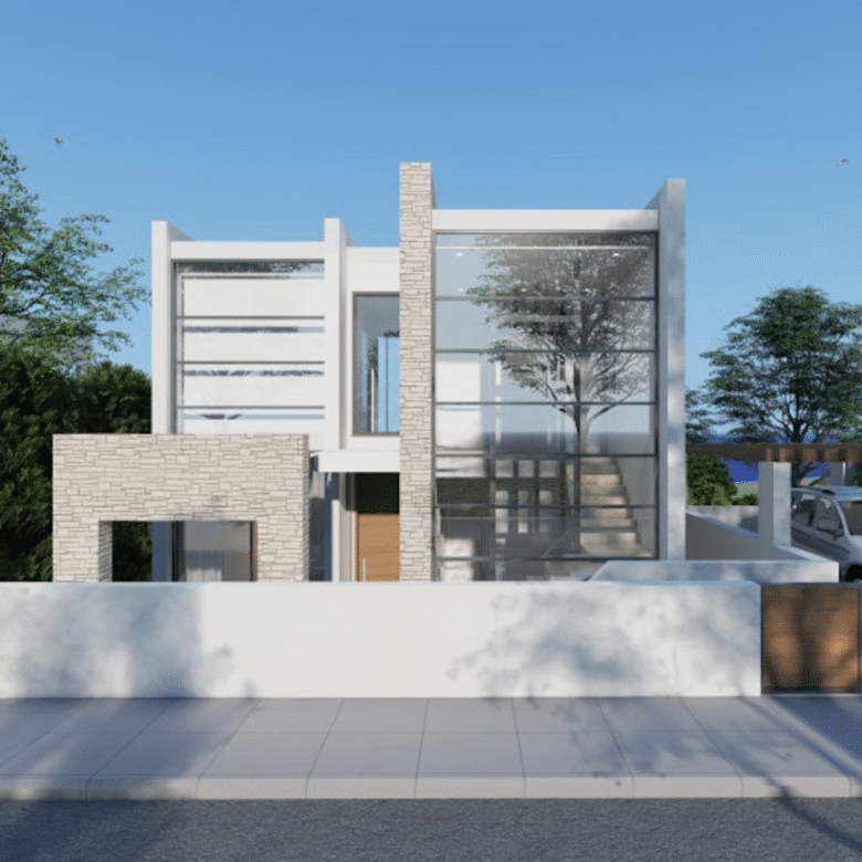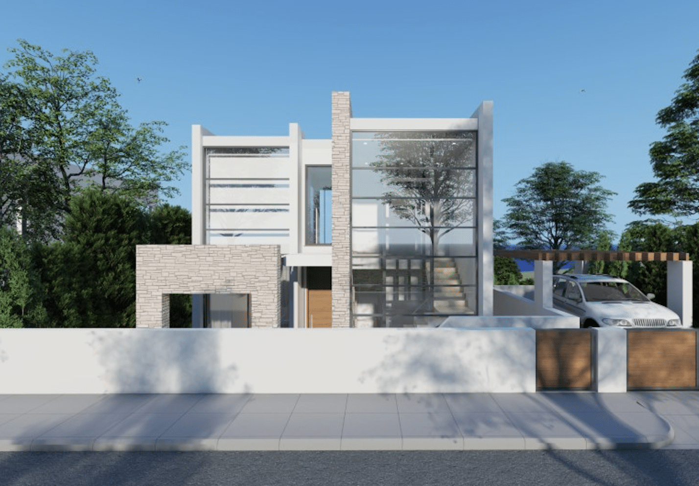 On the ground floor, there is the main living area with large floor-to-ceiling windows, a well-equipped open space kitchen, and a welcoming dining area. The four bedrooms with en suite bathrooms are spread on the ground and first floor. The en-suite dressing room and walking closet add a touch of luxury and serve the modern needs for functionality and comfort.