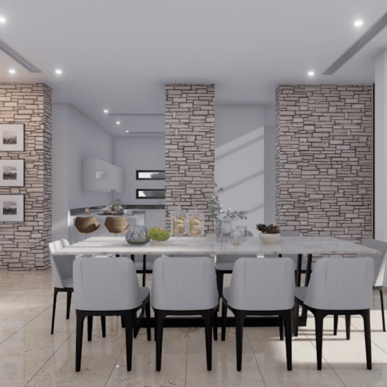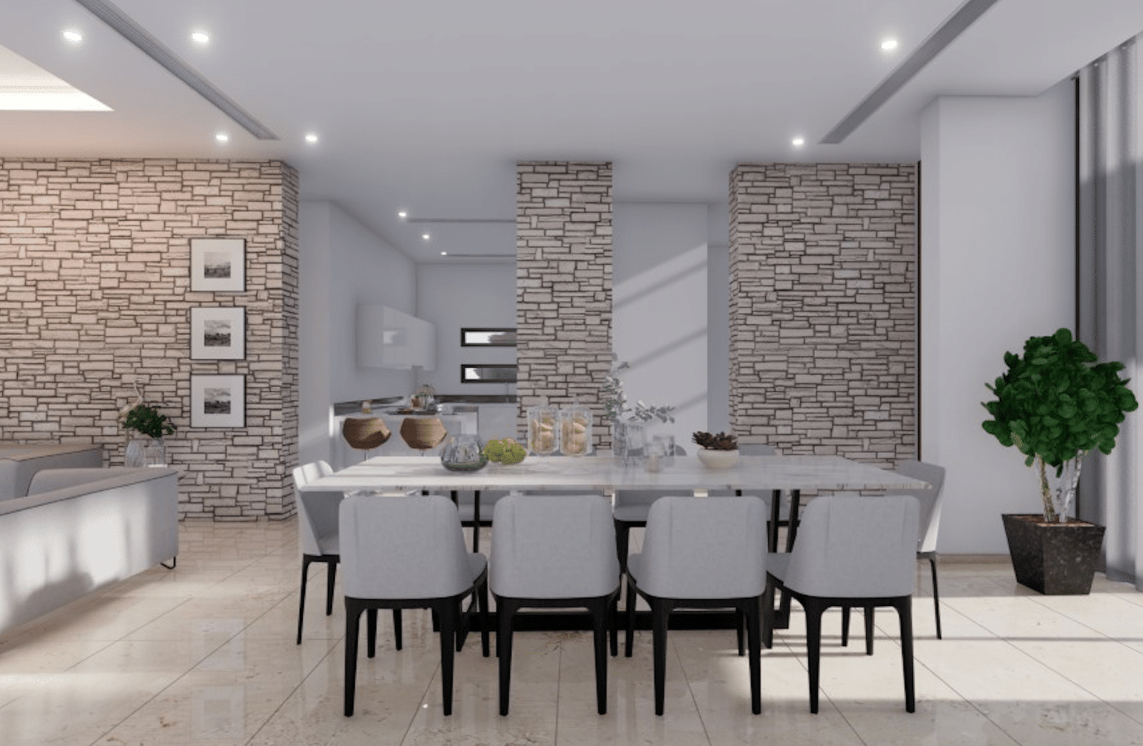 To make this project even more impressive, the exterior areas are dominated by the imposing spacious pool surrounded by sunbeds and sitting and dining areas that offer the feeling of enjoyment and relaxation throughout the day and the night.