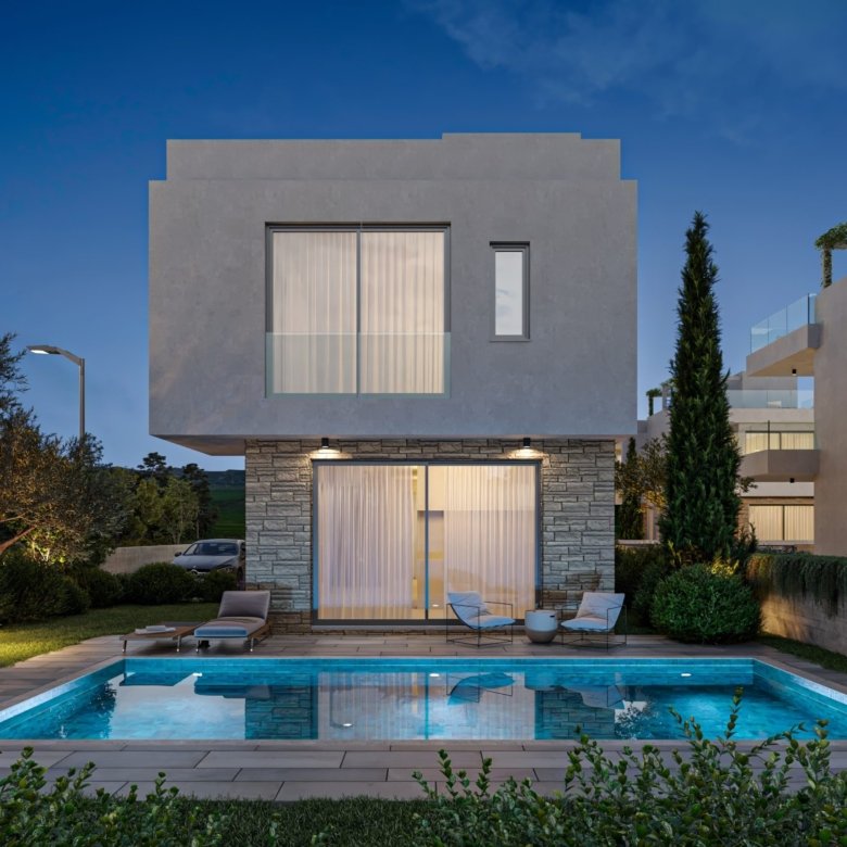 This 3-bedroom house is located in Kato Paphos, along the beautiful coastline, just a short distance from urban amenities and Paphos International Airport. The project comprises 23 exclusive villas, each designed with modern architecture and high-quality finishes. This house features 3 spacious bedrooms, 3 bathrooms, a private swimming pool, and a rooftop garden offering stunning views.