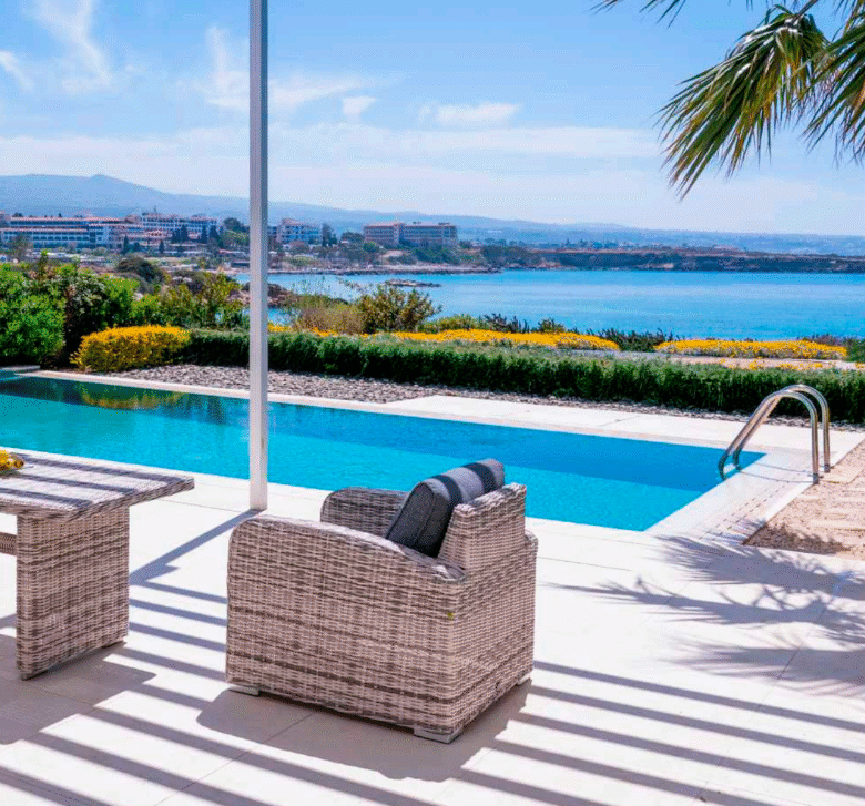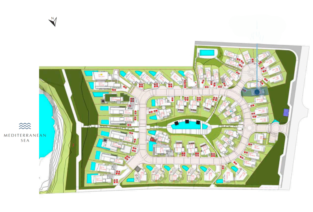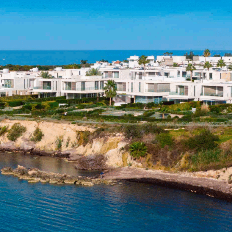 The property is conveniently close to the Coral Beach Resort & Spa, archaeological sites, places of interest, and several Blue Flag-awarded beaches. The villa features 3 spacious bedrooms, 2 modern bathrooms. The complex offers access to communal facilities, including a sauna, gym, and landscaped gardens.