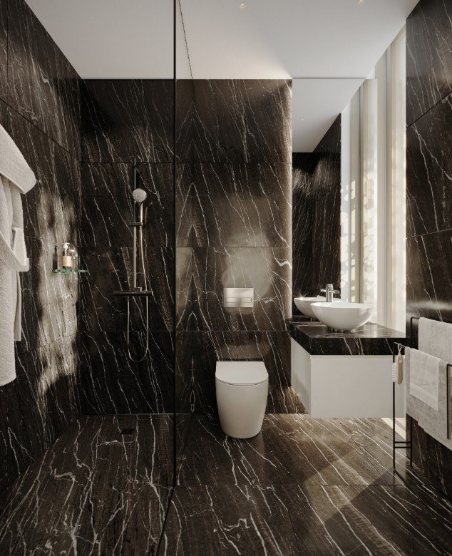 The development is set on a 9,100 m² plot and consists of five separate buildings. Residents can enjoy a wide range of luxury amenities, including a spa, gym, lobby, concierge services, and 24-hour security. The complex features a large communal pool, children’s pool, pool bar, lounge areas, playgrounds, and landscaped communal spaces.