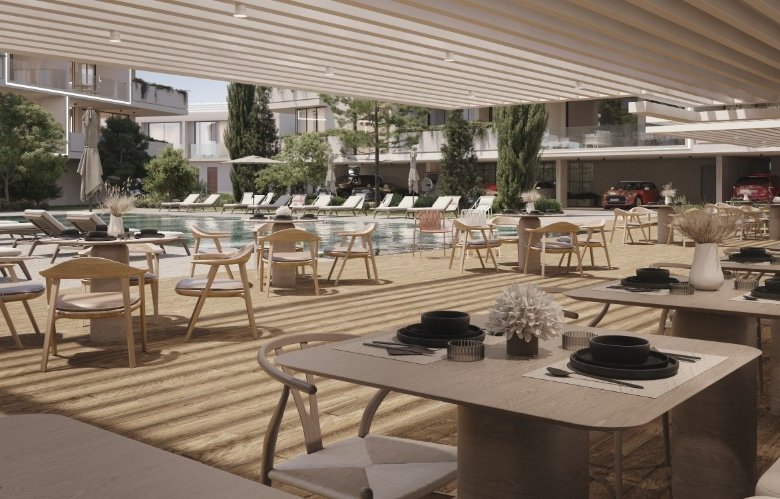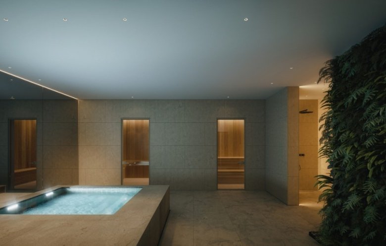 The development is set on a 9,100 m² plot and consists of five separate buildings. Residents can enjoy a wide range of luxury amenities, including a spa, gym, lobby, concierge services, and 24-hour security. The complex features a large communal pool, children’s pool, pool bar, lounge areas, playgrounds, and landscaped communal spaces.