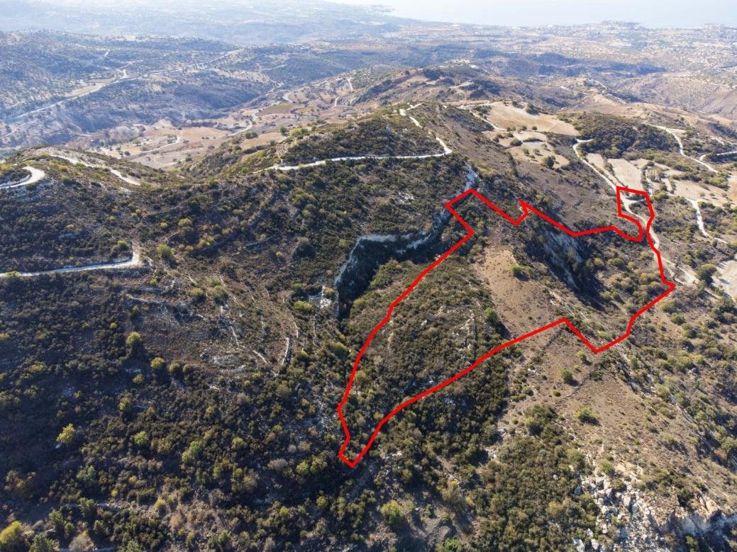 This property is 33% share of an agricultural field in Akoursos. It is located 810m from the centre of the community. The field has a total area of 41,472sqm (corresponding land area is approximately 13,686sqm). The villages of Kathikas and Pegeia can be reached within a 10 mins drive.