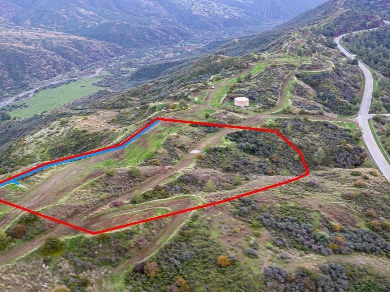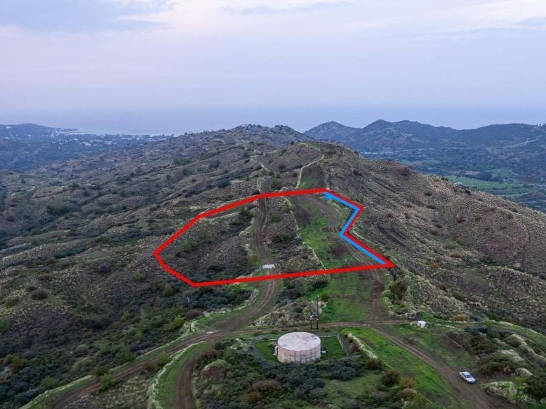 The property is a shared (50%) agricultural field in Pano Pyrgos. It is located 1,3km from the centre of the community, 1,4km from Profitis Elias church and 65m from the main road of Pano Pyrgos – Nicosia. The field has a total area of 9,365sqm and a part of the field, approximately 918sqm, has been requisitioned (marked in blue). The corresponding area is approximately 4,224sqm.