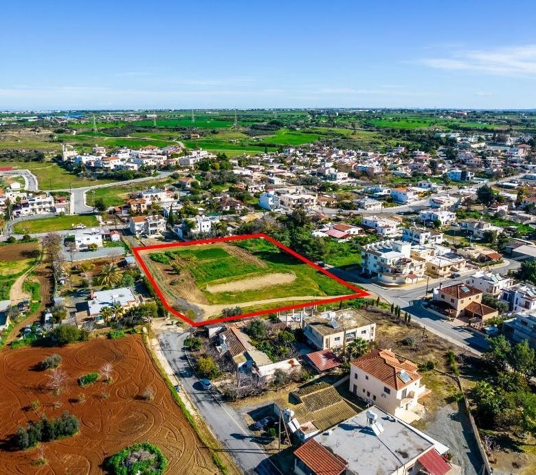The property is a shared (80%) residential field in Ormideia. It is located 580m from the highway and 1,2km from the community’s center. The field has a total area of 8,302sqm and the corresponding land area is approximately 6,642sqm. It abuts a registered road along its southwest boundary. The property offers close proximity to all amenities and easy access to the highway and the sea.