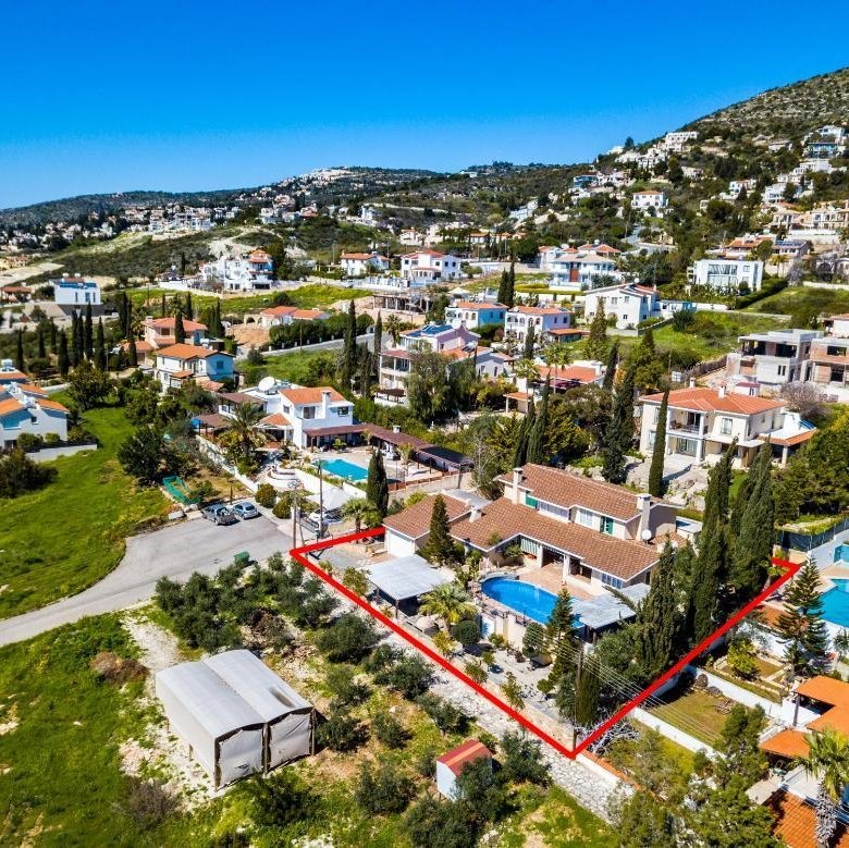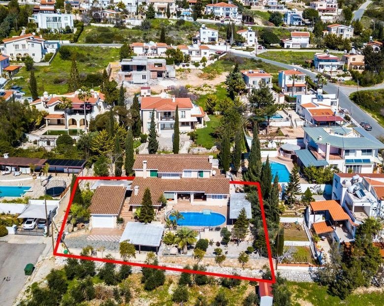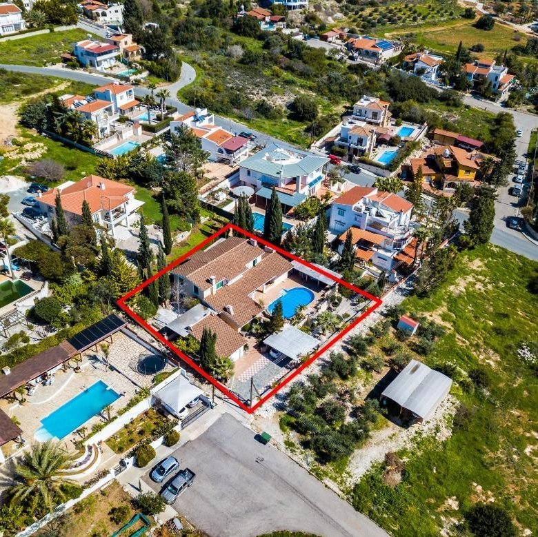 The property is a 3-bedroom detached house with a swimming pool in Tala. It is located 1km from Tala’s center and 265m from Agiou Neophytou avenue. The house has a covered area of 283sqm, covered verandas of 34sqm and ancillary area of 35sqm. It offers close proximity to all amenities and easy access to the main road to Paphos city center.